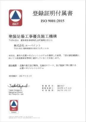 ユーペイントでは足場も自社施工のため中間マージンが発生しません。また、効率的な施工を考えた上で足場を組むため、作業の効率化・合理化、適切な足場の組立・解体が可能です。そのため、原価を抑えることができ、お客様へ価格として還元することができています。