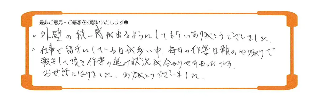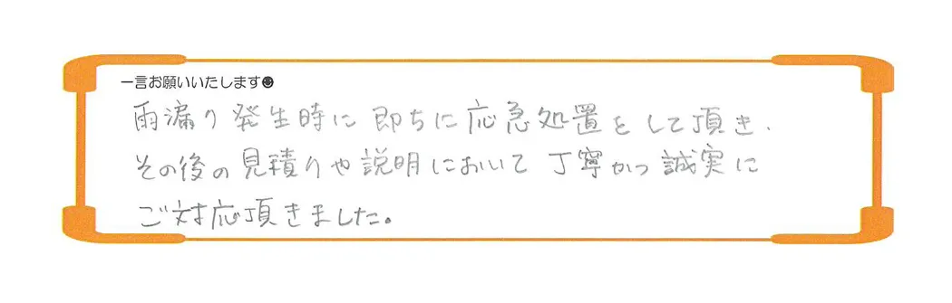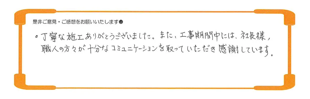・また施工も丁寧で完了時には、各工程の写真もいただき信頼できる会社だと感じました。